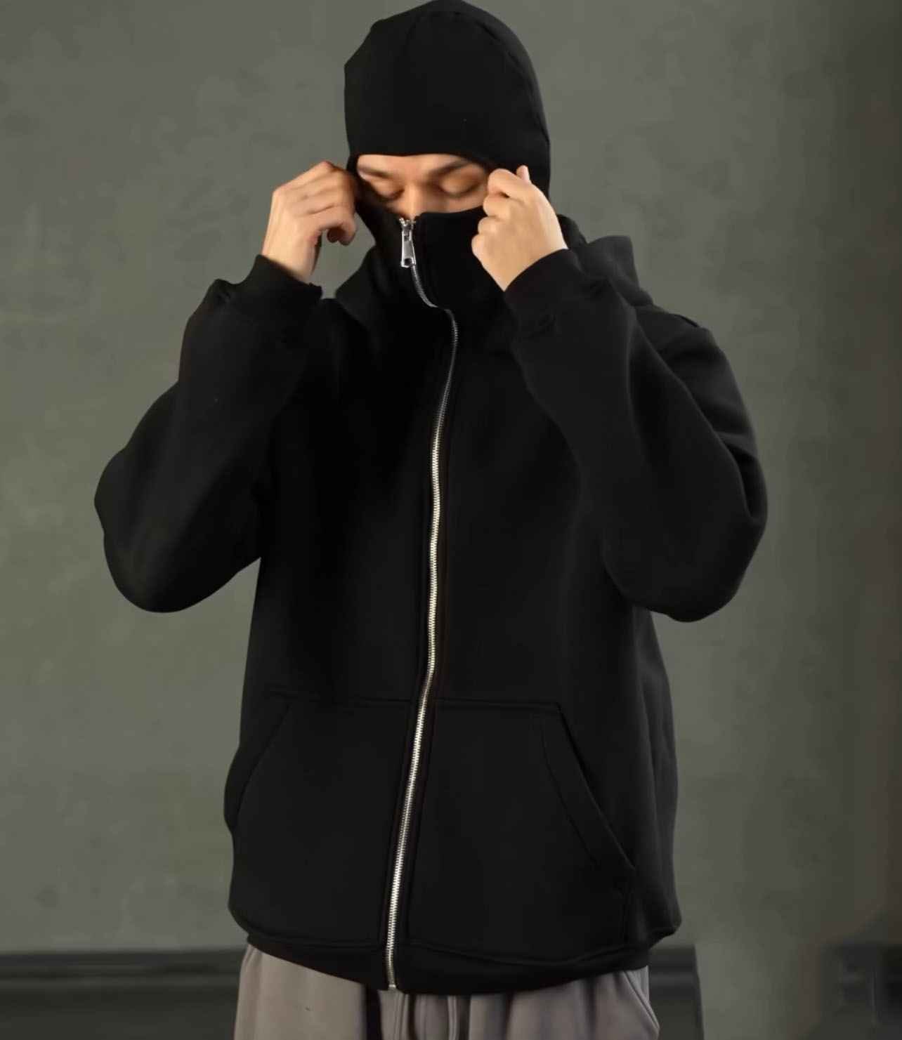High Quality Face Cover Hoodie – Ninja Style Zip-Up Streetwear
